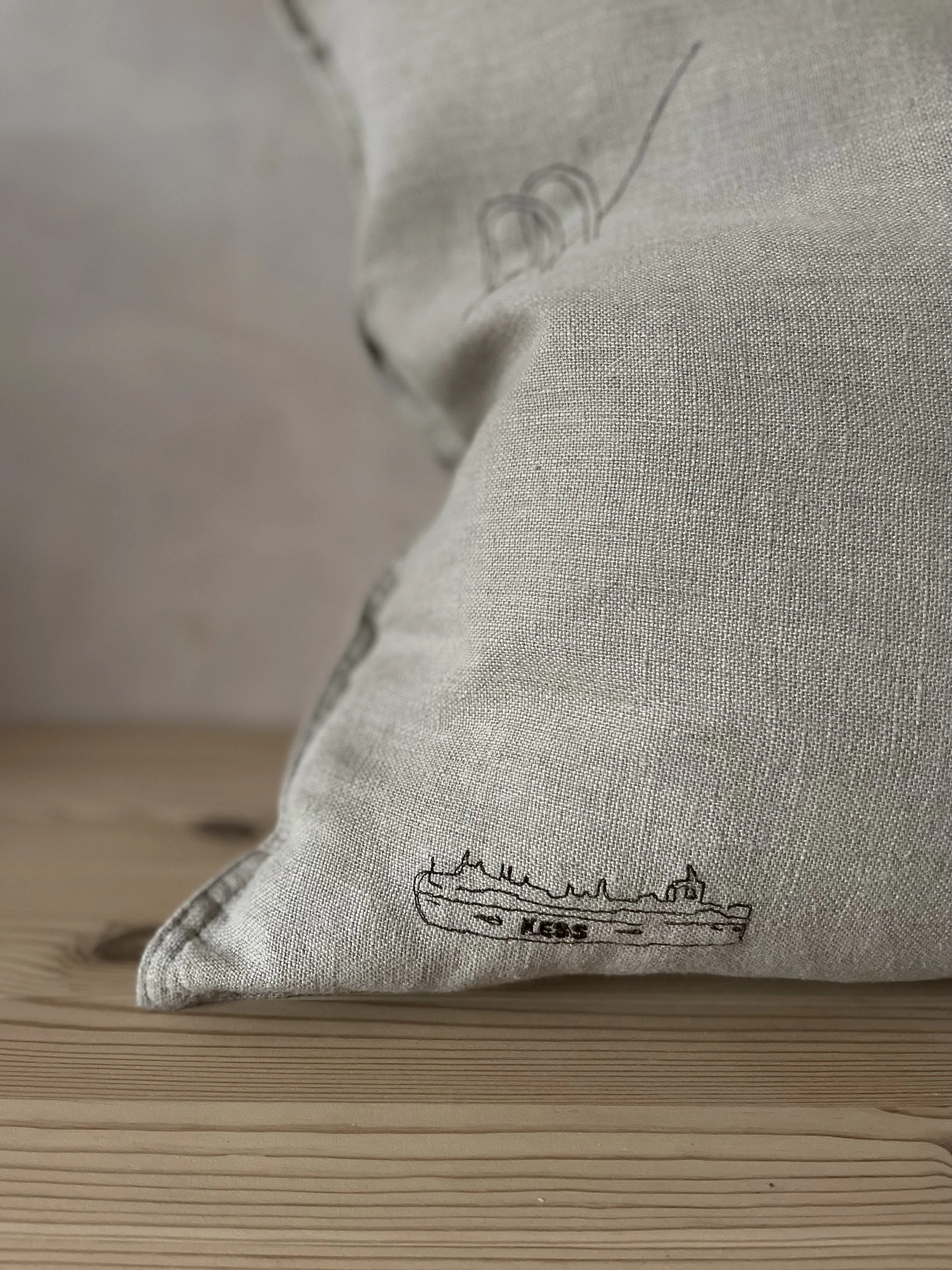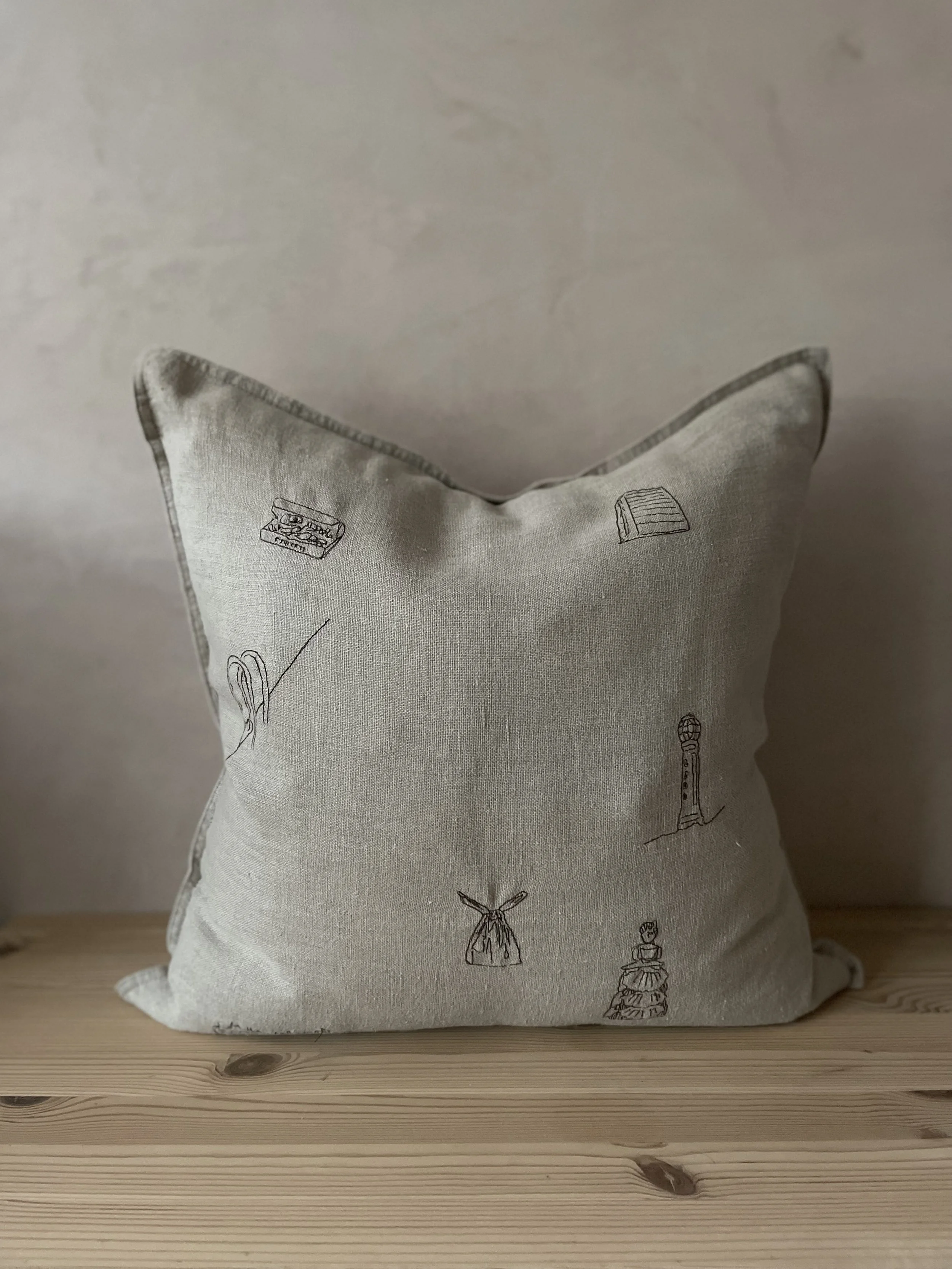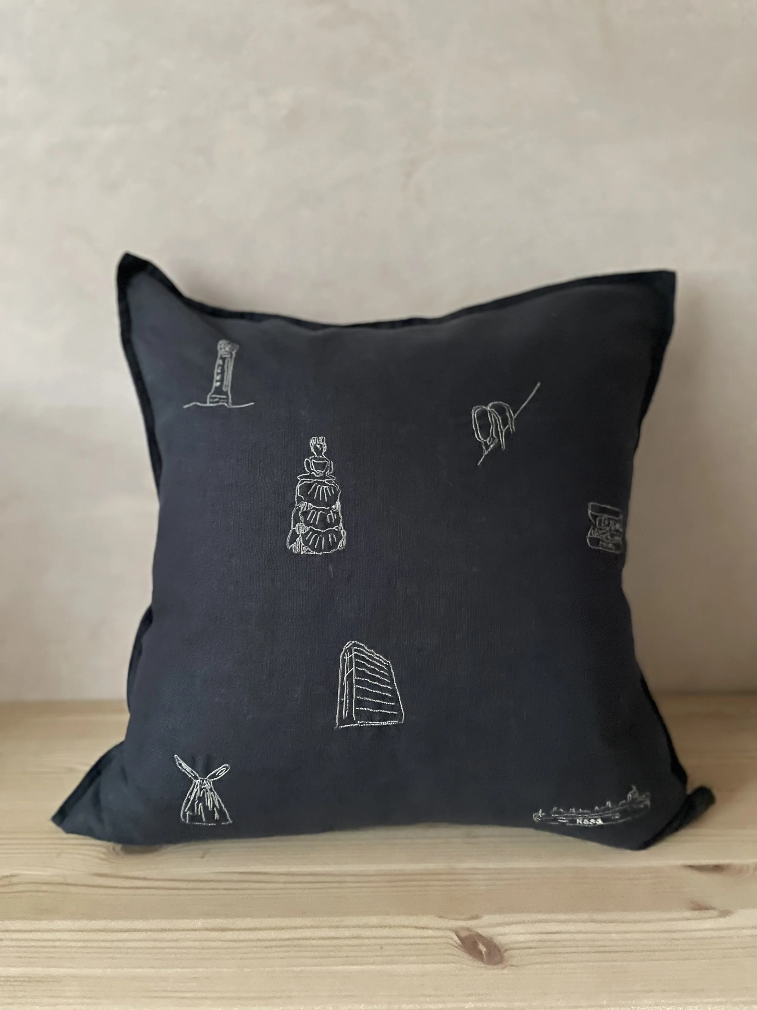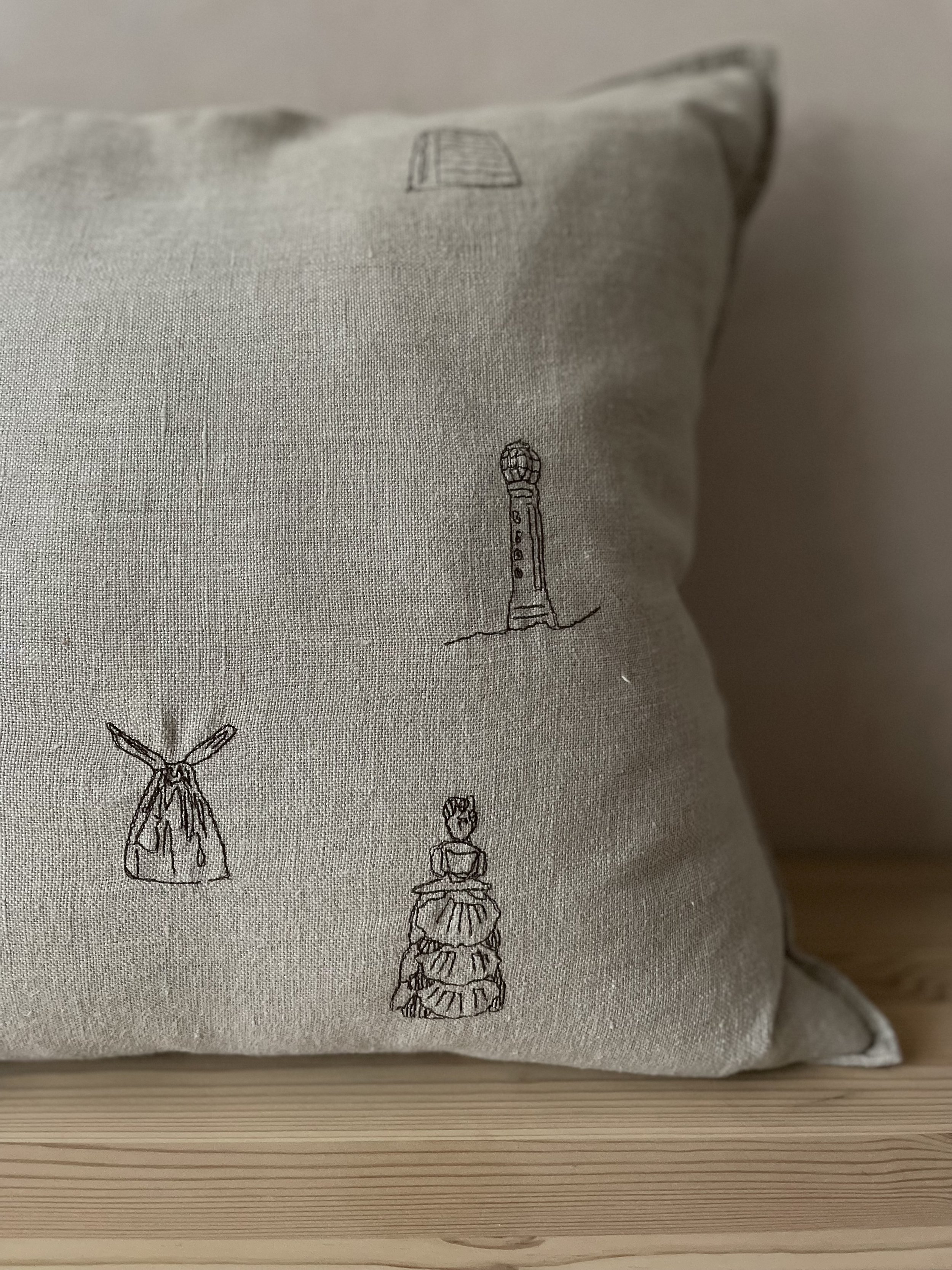Our handsome linen cushion covers with icon Margate motifs are embroidered locally, just a stones throw from our shop. They come presented in an August gift box, tied with our signature orange cotton string.